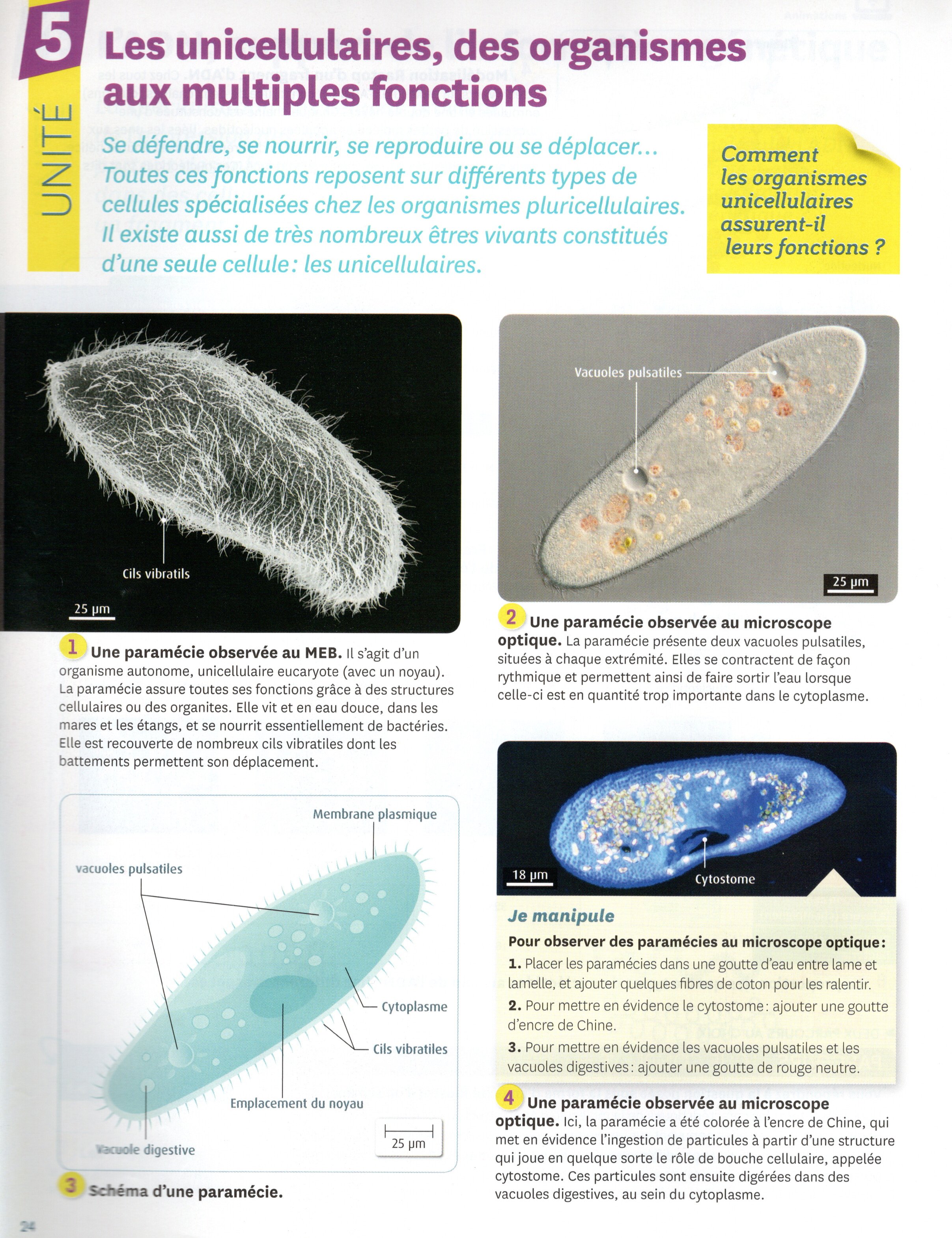 Activité du livre pages 24 et 25 : les unicellulaires, des organismes aux multiples fonctions (10/11/21)
